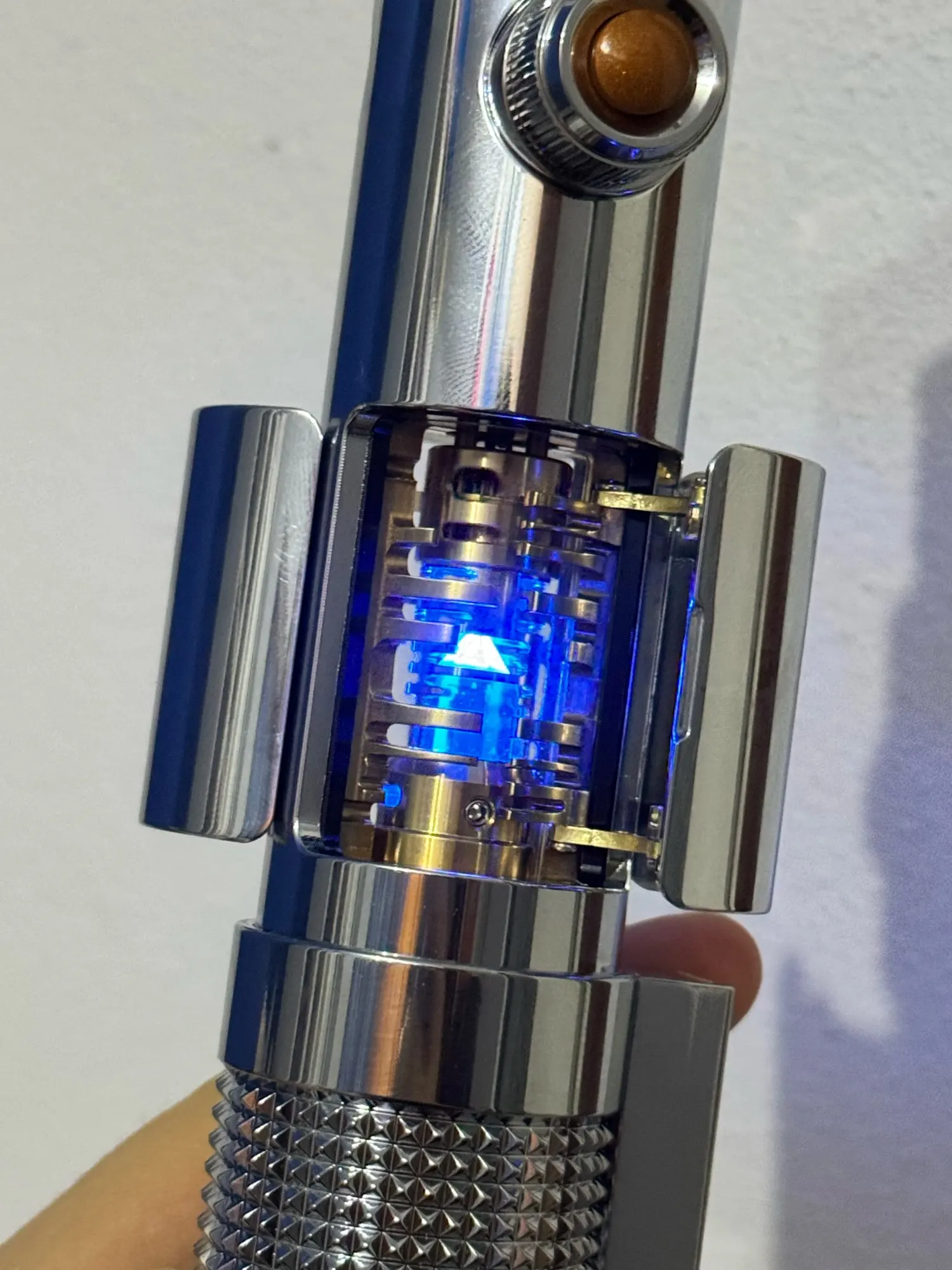 This is my first lightsaber, and it is absolutely perfect. The quality of the crystal chamber is outstanding. Usually, these kinds of opening gimmicks can be loose or poorly fitted, but this one is incredibly smooth and solid. Every man would be fascinated by the sight of the glowing kyber crystal inside.